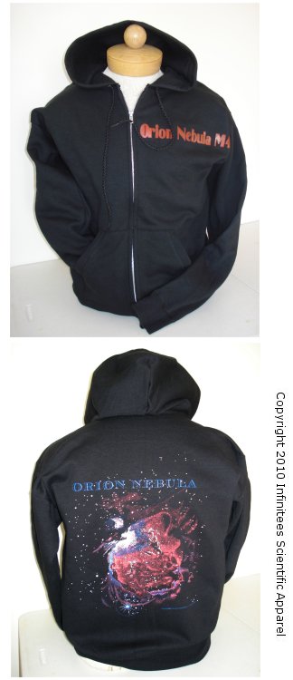 The Trifid Nebula design is also available on long sleeved t-shirts, Zip-up hooded jackets, as well as hooded sweatshirts.